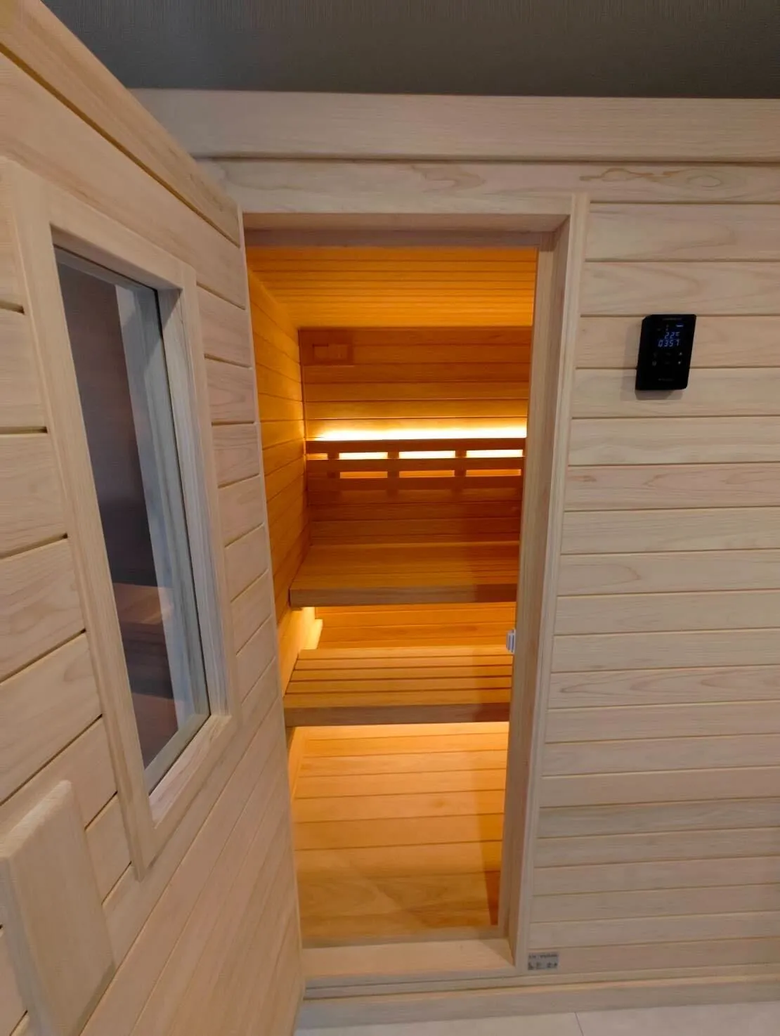 3〜4人で入れる自宅サウナを設置。 家族団らんの時間や、1人でも極上の「ととのい」を自宅で満喫。
